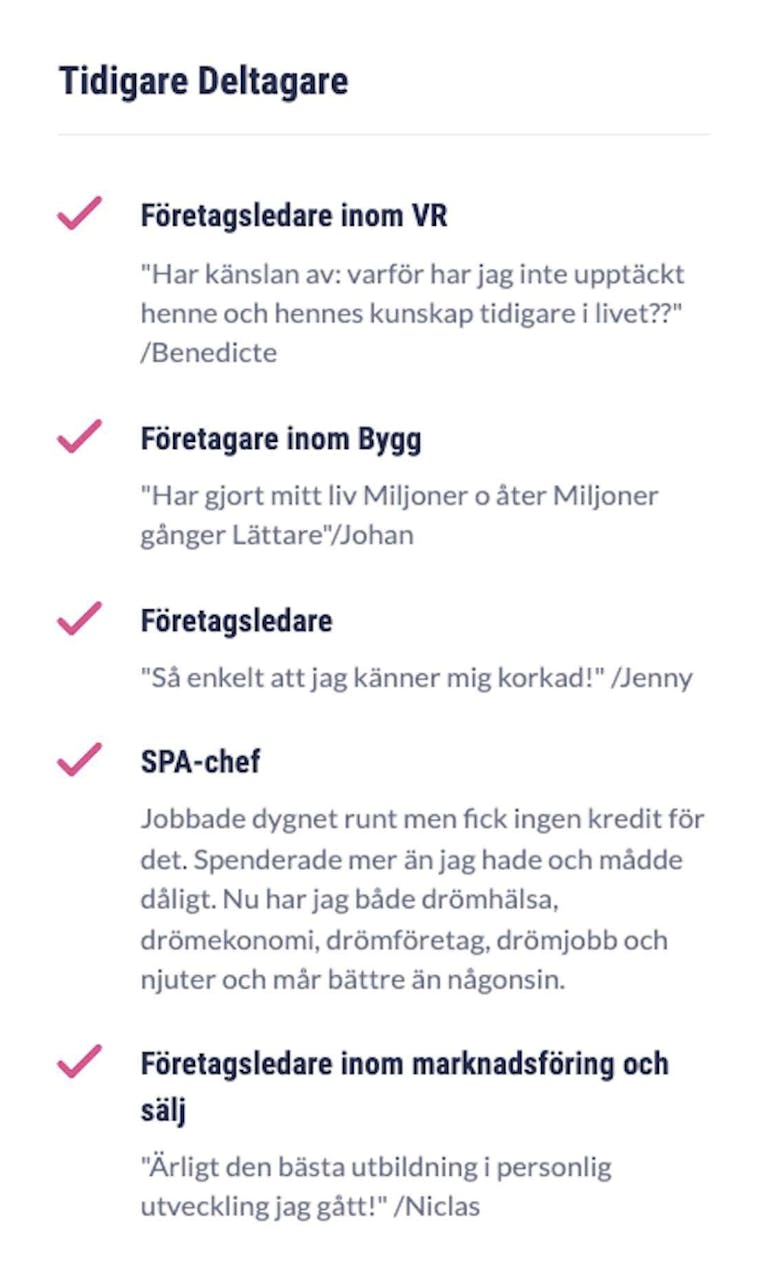 “Ärligt den bästa kurs i personlig utveckling jag gått!" /Niclas – Företagsledare inom marknadsföring och sälj